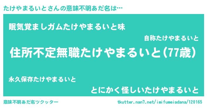 | 料理風あだ名 | 『たけやまるいとのカルパッチョ風』 |