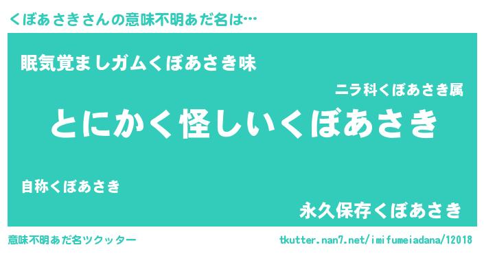 | 欧米人風あだ名 | 『ウサインくぼあさき』 |