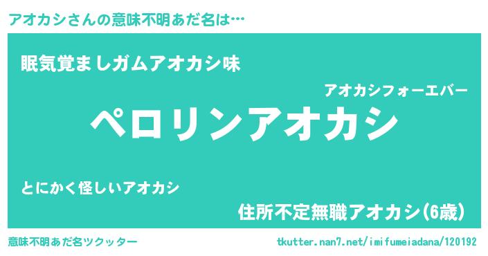 | 欧米人風あだ名 | 『マイケルアオカシ』『ダニエルアオカシ』 |