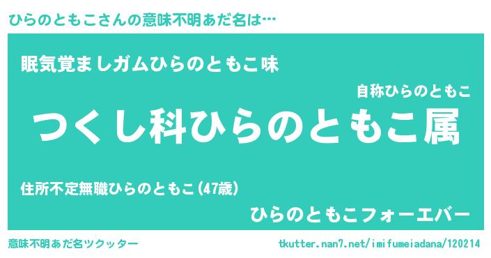 | 胡散臭い通販商品みたいなあだ名 | 『モンドセレクションを受賞した隕石のかけら…その名も「ひらのともこ」』 |