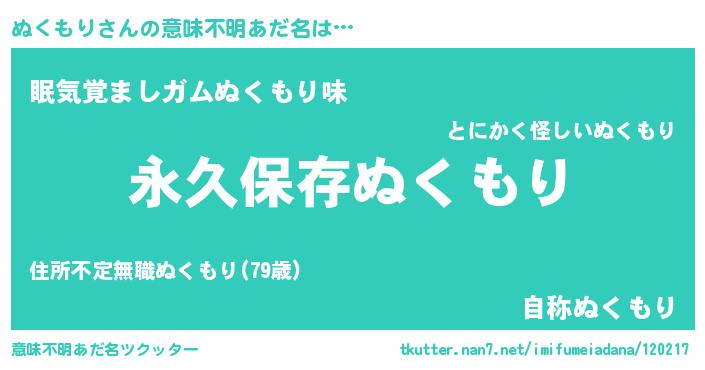 | ヒーロー風カッコイイあだ名 | 『ネオヌクモリ』『天空の使者ぬくもり』 |