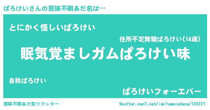 | ヒーロー風カッコイイあだ名 | 『天空の使者ぱろけい』『天弓騎士パロ』 |