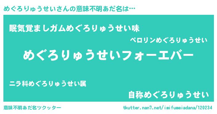 | ファンタジー風あだ名 | 『エターナルメグロリュウセイー』 |