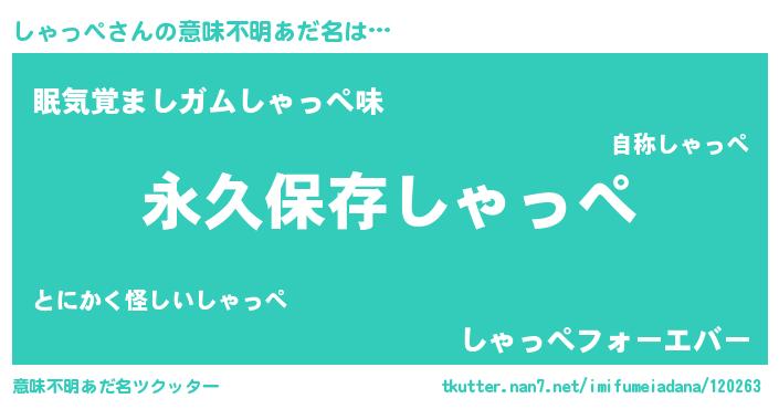 | ヒーロー風カッコイイあだ名 | 『ネオシャッペ』『正義の使者しゃっぺ』 |