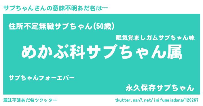 | ヘコむあだ名 | 『サブちゃん(笑)』『つくし』 |