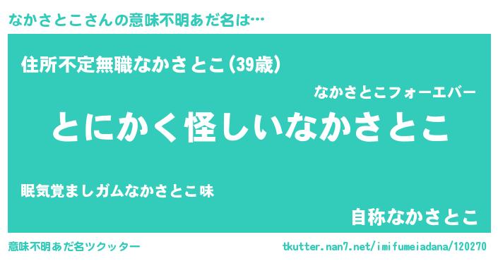 | 胡散臭い通販商品みたいなあだ名 | 『信頼と実績のサプリメント…その名も「なかさとこ」』 |