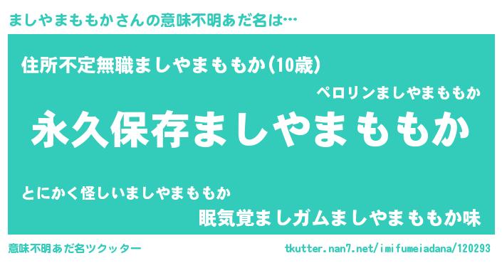 | 女子向けラノベタイトル風あだ名 | 『異世界で失敗しない100のましやまももか』 |