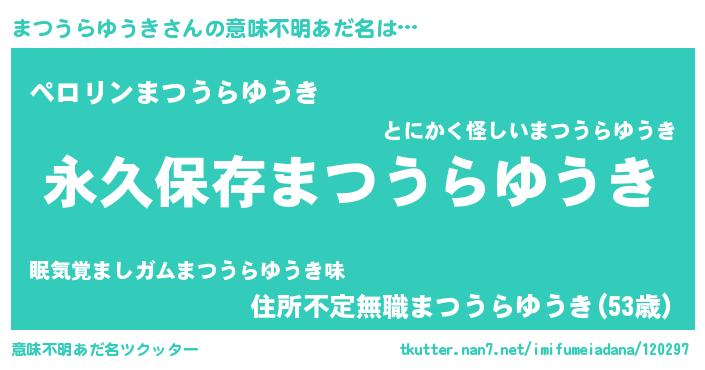| 伝説のあだ名 | 『古文書に記された吟遊詩人まつうらゆうき』 |