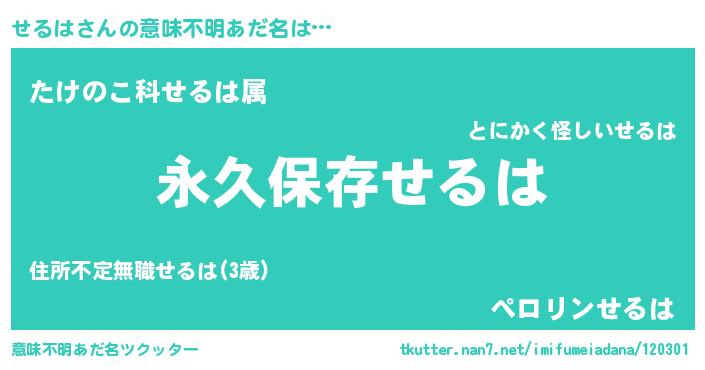 | ヘコむあだ名 | 『せるは(遠い目)』『せるにー』 |