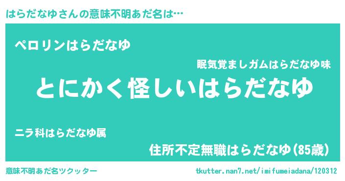 | 伝説のあだ名 | 『解き放たれた遊び人はらだなゆ』 |