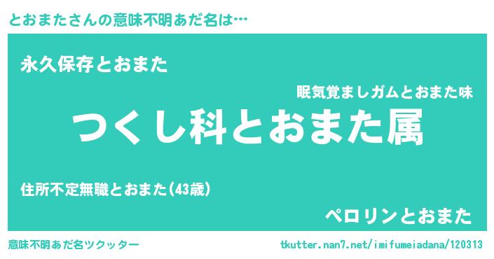 | 胡散臭い通販商品みたいなあだ名 | 『前代未聞の健康食品…その名も「とおまた」』 |
