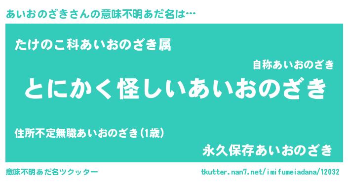 | 男性向けラノベタイトル風あだ名 | 『あいおのざきの嫁は女の子じゃないと思った?』 |