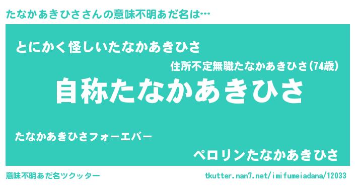 | 男性向けラノベタイトル風あだ名 | 『Re:たなかあきひさから始める異世界生活』 |