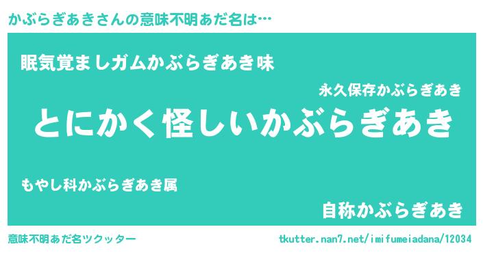 | 男性向けラノベタイトル風あだ名 | 『かぶらぎあきに滅ぼされるだけの簡単なお仕事です』 |