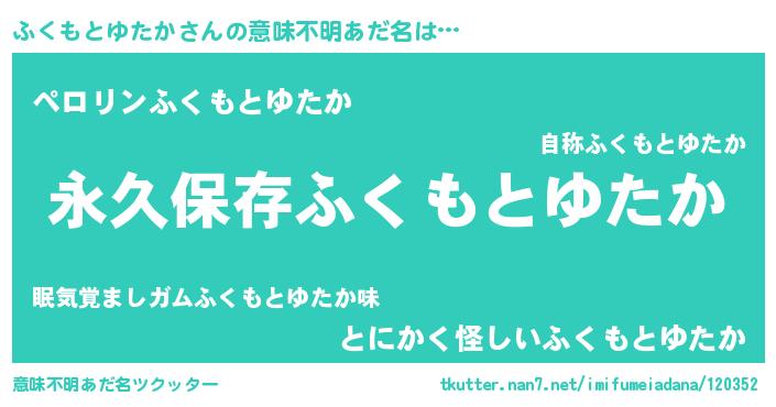 | 男性向けラノベタイトル風あだ名 | 『ふくもとゆたかという概念が存在しない退屈な世界 』 |