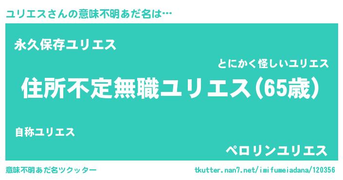 | 男性向けラノベタイトル風あだ名 | 『この素晴らしい世界にユリエスを!』 |