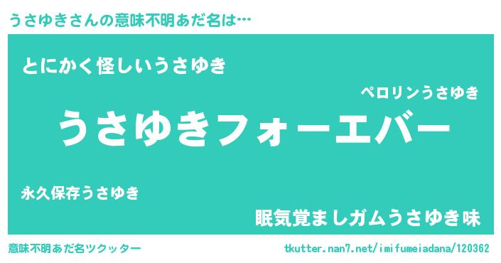 | ポケモン風あだ名 | 『ウサユダネ』『ヒウサユキ』 |