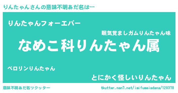| 男性向けラノベタイトル風あだ名 | 『転生したらりんたゃんだった件』 |