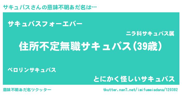 | 女子向けラノベタイトル風あだ名 | 『乙女ゲームの破滅フラグしかない悪役サキュバスに転生してしまった…』 |