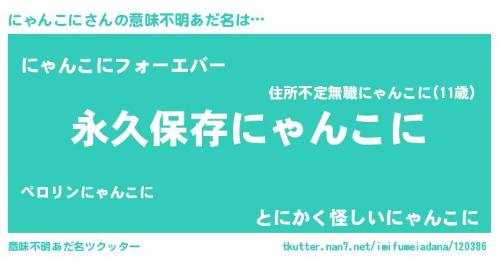 | 男性向けラノベタイトル風あだ名 | 『にゃんこにという概念が存在しない退屈な世界 』 |