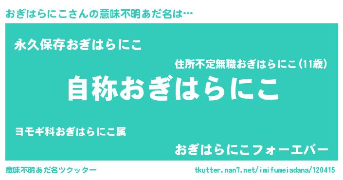 | ヘコむあだ名 | 『おぎはらにこ(遠い目)』『つくし』 |