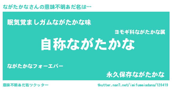 | 肩書あだ名 | 『ながたかな閣下』『ながたかな助教授』 |