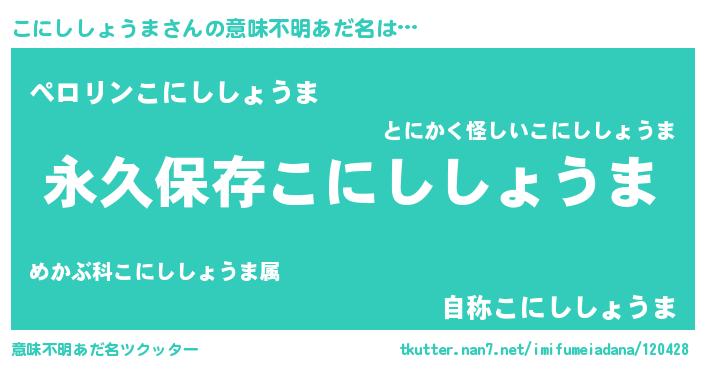 | 男性向けラノベタイトル風あだ名 | 『こにししょうまという概念が存在しない退屈な世界 』 |