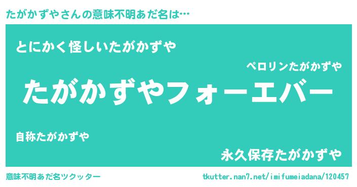 | ポケモン風あだ名 | 『タガカダネ』『ヒタガカズヤ』 |