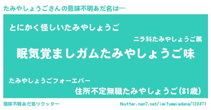 | 胡散臭い通販商品みたいなあだ名 | 『モンドセレクションを受賞したイリジウム磁石…その名も「たみやしょうご」』 |