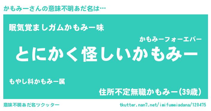 | 胡散臭い通販商品みたいなあだ名 | 『全米が絶賛したサプリメント…その名も「かもみー」』 |
