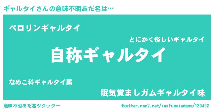 | 男性向けラノベタイトル風あだ名 | 『Re:ギャルタイから始める異世界生活』 |