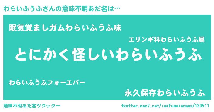 | ヒーロー風カッコイイあだ名 | 『幻影騎士ワラ』『ネオワライフウフ』 |