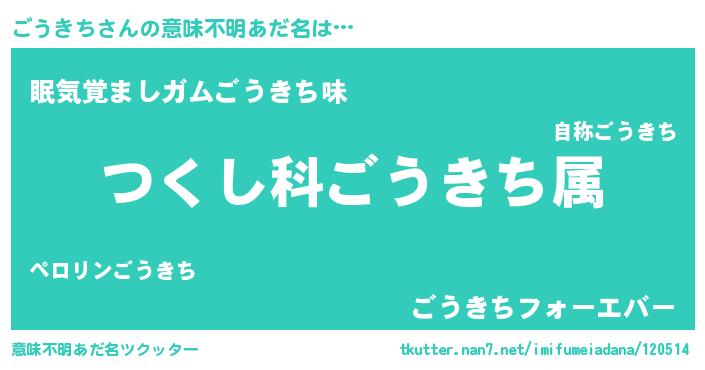 | 女子向けラノベタイトル風あだ名 | 『ごうきちの玉の輿計画!』 |