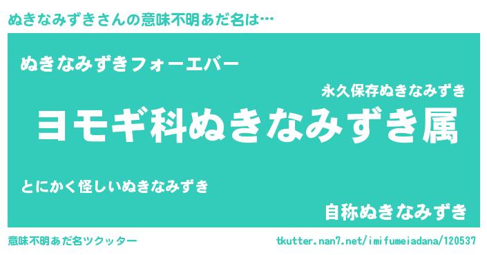 | 欧米人風あだ名 | 『トリンドルぬきなみずき』 |