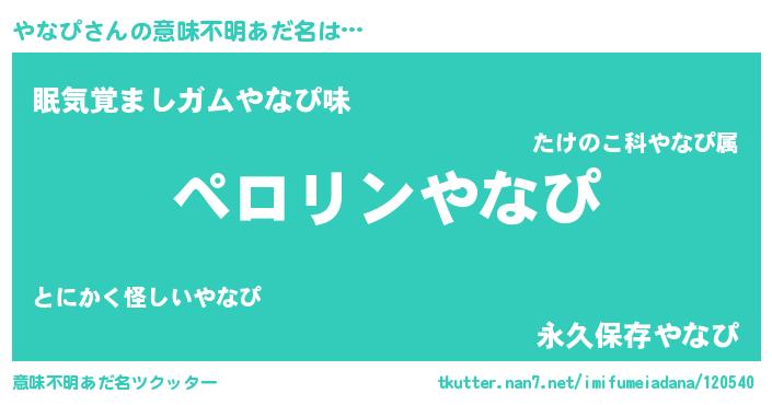 | ヒーロー風カッコイイあだ名 | 『スーパーヤナピ』『天空の使者やなぴ』 |