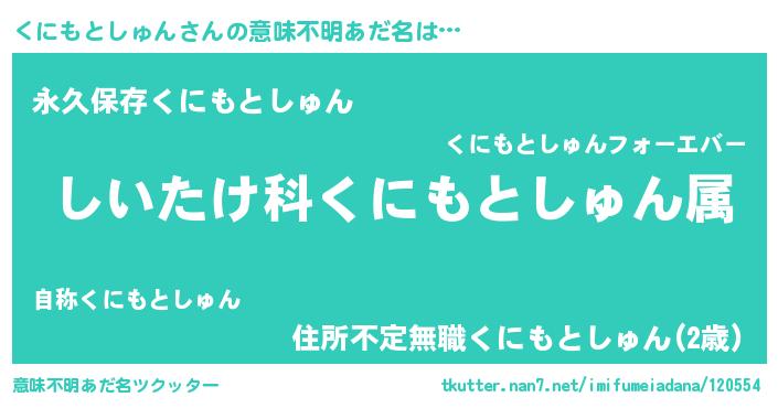 | 男性向けラノベタイトル風あだ名 | 『クニモトシュンスレイヤー』 |