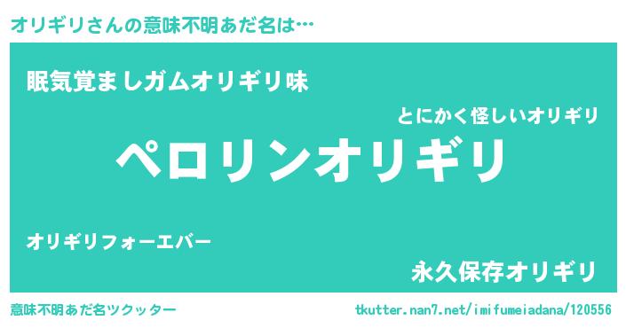 | 男性向けラノベタイトル風あだ名 | 『オリギリの憂鬱』 |