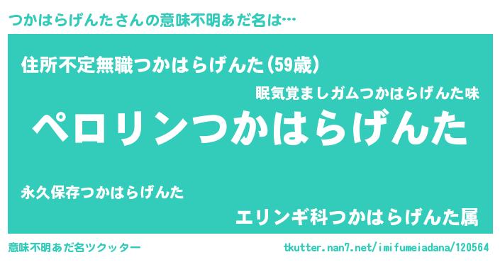 | 男性向けラノベタイトル風あだ名 | 『ツカハラゲンタアートオンライン』 |