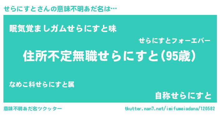 | 男性向けラノベタイトル風あだ名 | 『せらにすとに滅ぼされるだけの簡単なお仕事です』 |