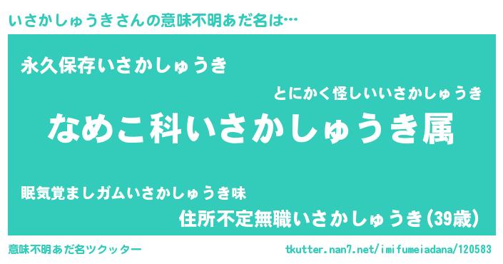 | 胡散臭い通販商品みたいなあだ名 | 『来世でも幸せになれる水素水…その名も「いさかしゅうき」』 |