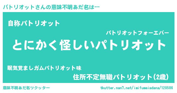 | 女子向けラノベタイトル風あだ名 | 『パトリオットは平凡を望む』 |