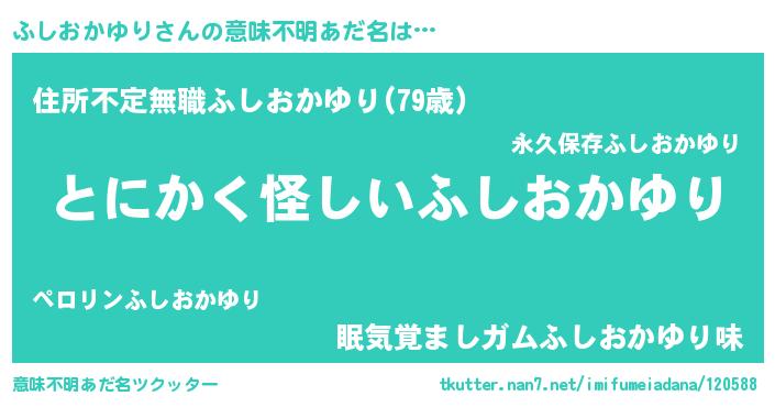| 欧米人風あだ名 | 『ウサインふしおかゆり』 |