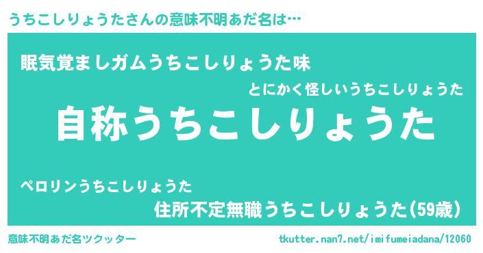 | 女子向けラノベタイトル風あだ名 | 『うちこしりょうたなんてお断りですっ。』 |