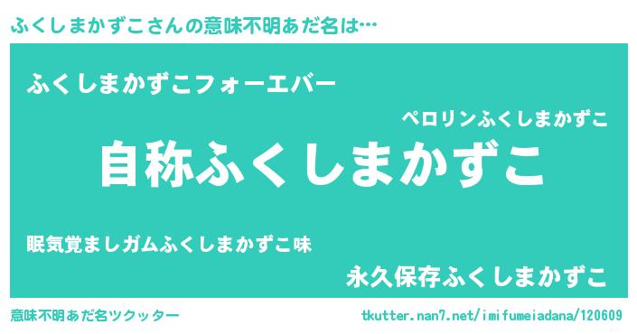 | 女子向けラノベタイトル風あだ名 | 『ふくしまかずこストレイドッグス』 |