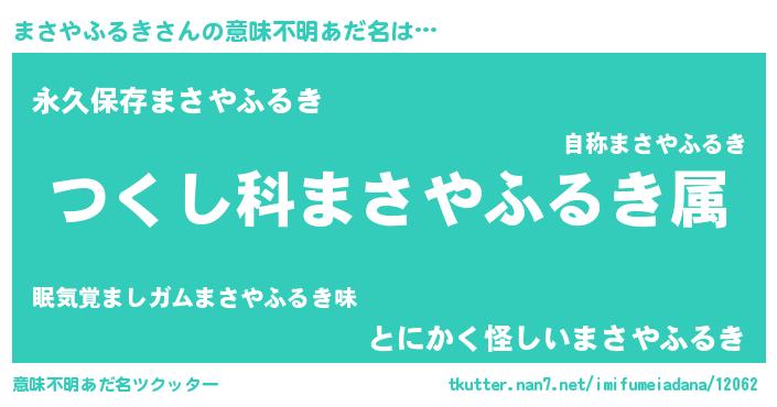 | 男性向けラノベタイトル風あだ名 | 『まさやふるき~年齢イコール彼女いない歴の魔法使い~』 |