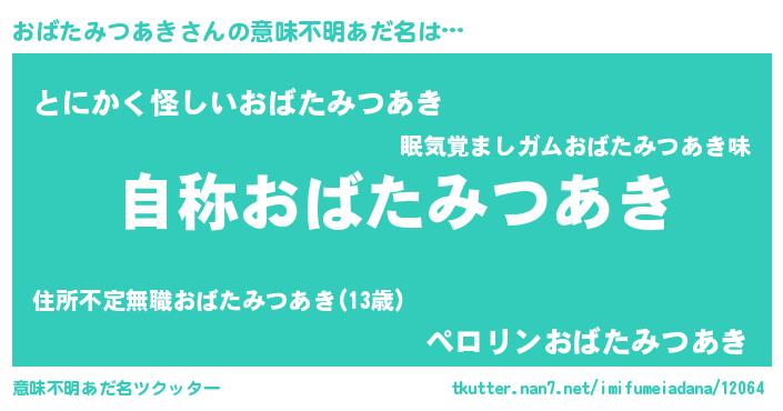 | 女子向けラノベタイトル風あだ名 | 『おばたみつあきアンティーク』 |