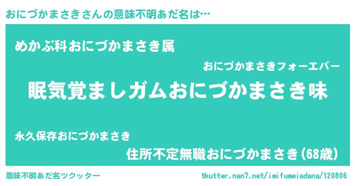 | 男性向けラノベタイトル風あだ名 | 『おまえをオタクにしてやるから、俺をおにづかまさきにしてくれ! 』 |