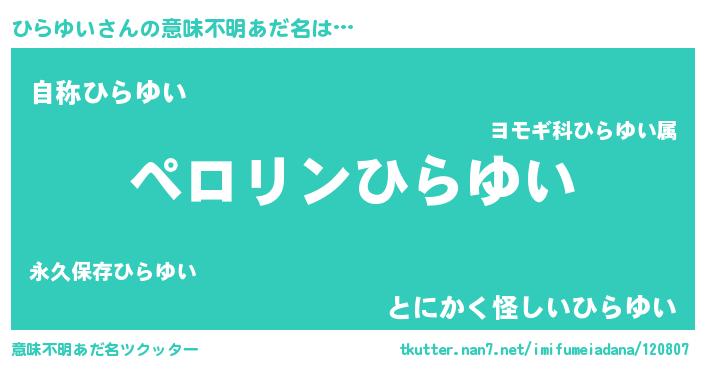 | ヒーロー風カッコイイあだ名 | 『スーパーヒラユイ』『最強戦士ヒラユイ』 |
