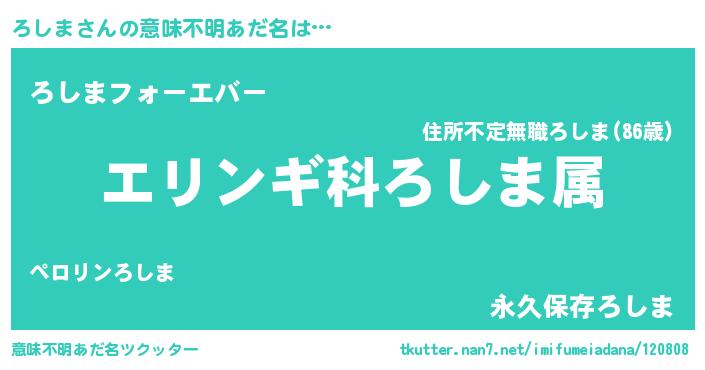 | 男性向けラノベタイトル風あだ名 | 『ロシマスレイヤー』『魔弾の王とろしま』 |