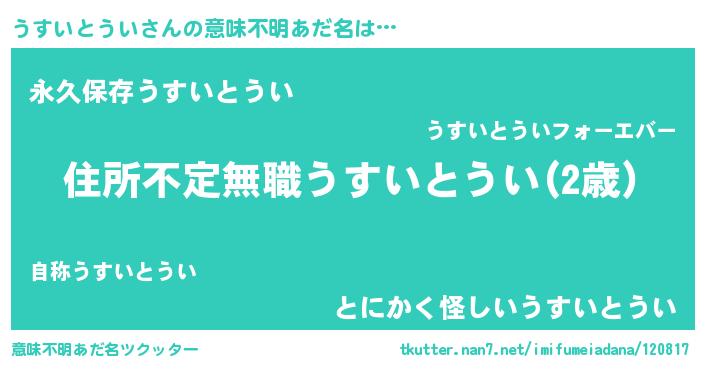 | ヘコむあだ名 | 『うすいとうい(小並感)』『うすっ子』 |
